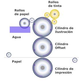 La prensa se denomina offset porque el diseño se transfiere de la plancha de impresión al rodillo de